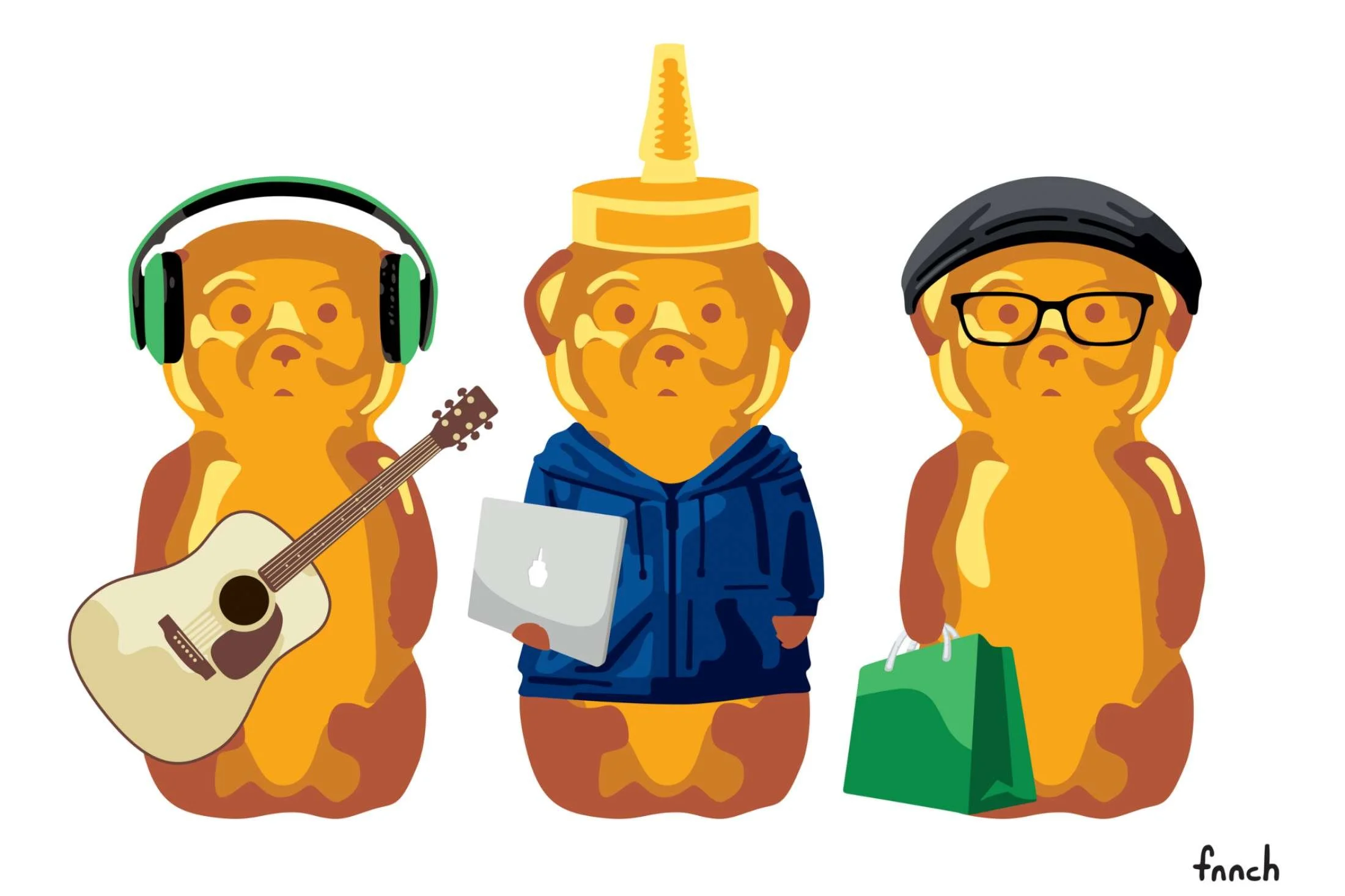 What came out is The Fnncherlude, a series of multimedia pieces that incorporate acrylic paint and collage— including someof fnnch’s signature Honeybears— on canvas.