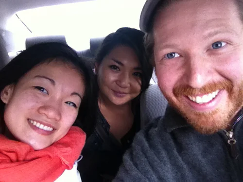 The back passenger learned French when she lived in Paris. The girl in front was raised in Montreal and was forced to learn at a young age because of all the French speakers. She Also speaks Mandarin. She teaches me about the four tones in the Mandarin language. How each word has four different tones, and each tone creates a completely different word. She explains how The Word Shi means both Rock, Shit, Am and Yes.