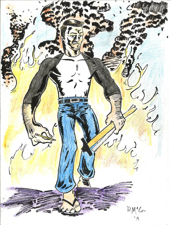 By that, I mean that I suddenly and organically experienced a big shift in my inking style. I had been doing a lot of fairly precise, deliberate inking lately. "A TripTo The Wrestling" was inked exclusively with fine-line marker pens. "#KOvsSCSA" and "A Tale of 2 Pirates..." were both done with a brush pen, but with vey slow and deliberate brush strokes.