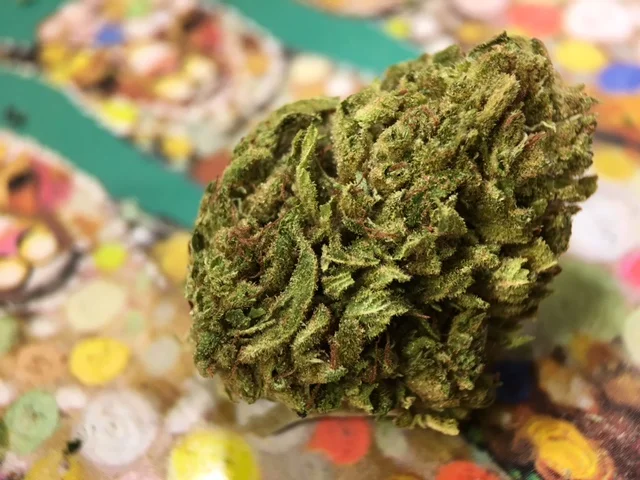 It has a strong, piney aroma and high levels of THC, which provokes a famously cerebral high.