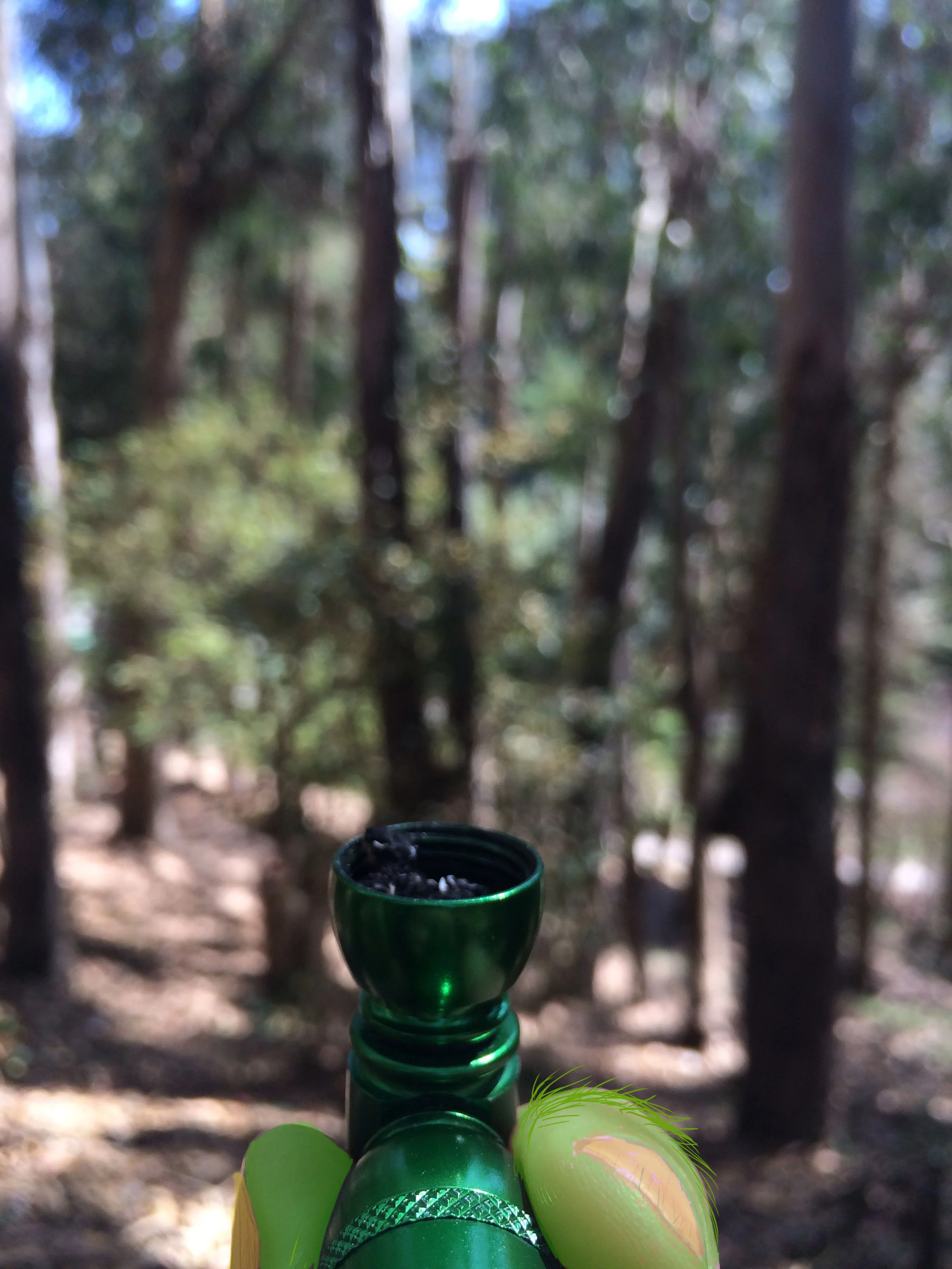 4:20pm: I've found a secluded patch of forrest at the western edge of San Francisco in which I can smoke a bowl in relative solitude. Dog walkers and urban hikers take little interest as I plow down 2 full bowls. I've got nothing to do and I might as well be high for it.